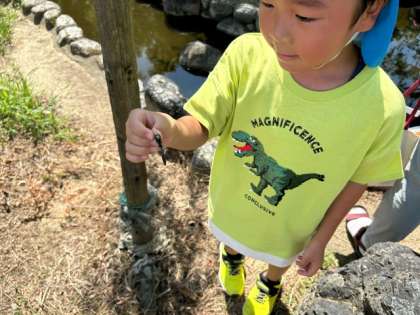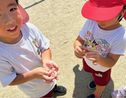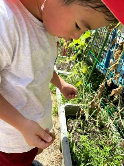 「見て、見て」「しおからトンボ捕まえた」「なんか種がある」「ハートの模様がついてる!」と発見したことを一生懸命に知らせてくれました。