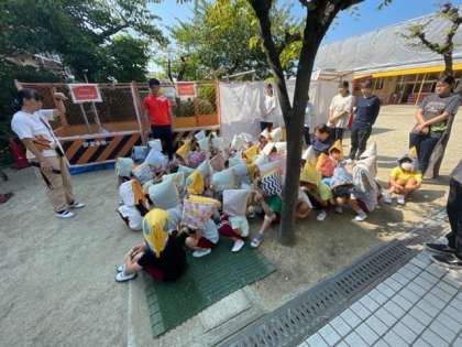 幼稚園よりも高いところは小学校、「小学校には食べるものもたくさんあるから助けてくれる」と話している子どももいました。そこで小学校に二次避難させてもらいました。