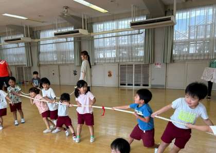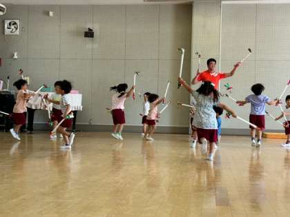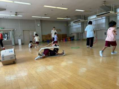 今日もリズム室で、いろいろな遊びを楽しみました。子どもたちから「やりたい」と言い、交代しあって遊びました。