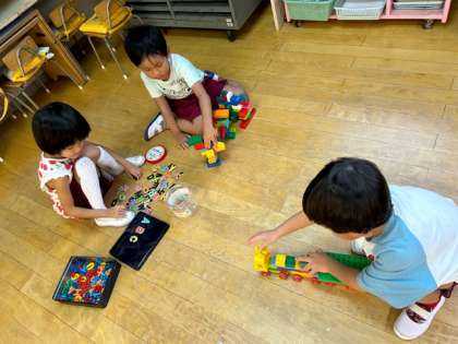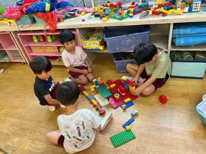 友達と一緒にブロックを組み立てたり、自分の好きなことに没頭して遊んだり、遊ぶことを楽しんでいるあか組です。