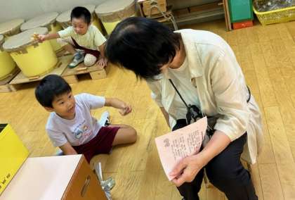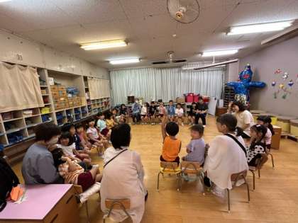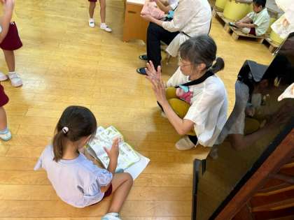 一緒にあやとりをしたり、絵をかいたりしました。集まって自己紹介をしました。