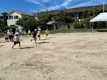 「あお組は走るの早いから教えたるわ」と自信満々に教えてくれて、「今度先生も一緒に競争しような、絶対に負けへん」と意気込んでいました。「みんなに教えてもらったこと、思い出して練習しとくね」と、今度走ってみる約束をしました。