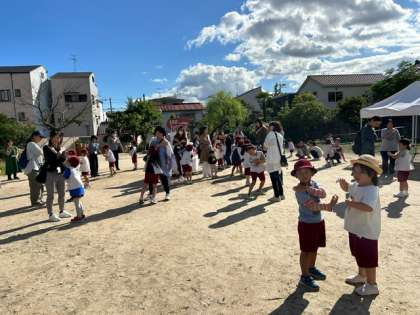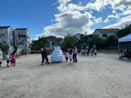 お家の人と一緒に、ケーキにロウソクを立てに行く競争をしたり、お家の人とダンスをしたりしました。お家の人が来ていない子どもたちも一緒に楽しみました。