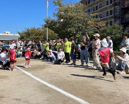 リレーでは抜きつ抜かれつを繰り返し、あお組全員が一生懸命に走って、バトンをつなぎました