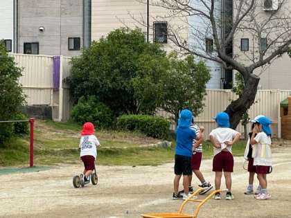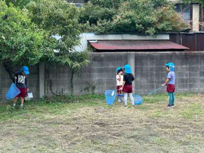 園庭では虫探しをしたり、自分たちで集まってスタートラインをかいてリレーを始めたりしていました。まだまだ遊びが楽しめそうですね。