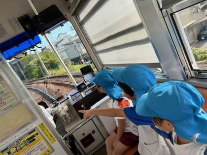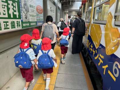 貸切の阪堺電車に乗って、天王寺動物園へ行きました。住吉幼稚園の子どもたちしか乗っていないので、今日見たいものや車窓から見える風景について大騒ぎの車内でした。