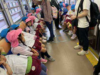最後は貸切の阪堺電車に乗って帰りました。疲れている子どもが多く、ぐったりとなって座っていました。