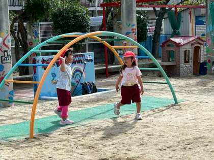 園庭で、したいことを自分で見つけて、挑戦しています。