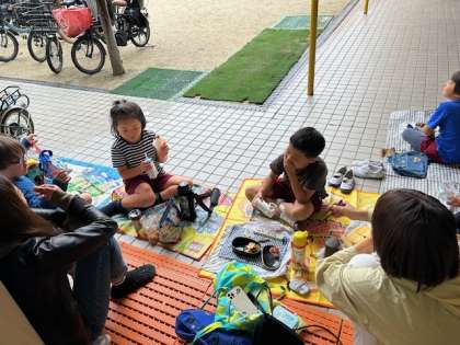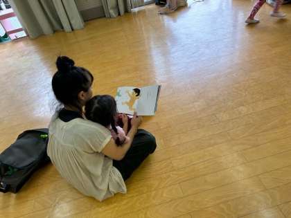 ご飯はおうちの人も一緒にお弁当を食べました。お腹休めもしました。ひざにのせてもらって絵本を読んでもらう姿もありました。
