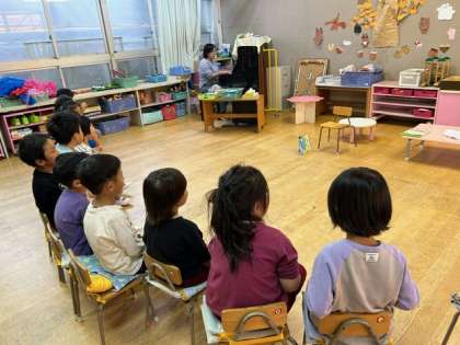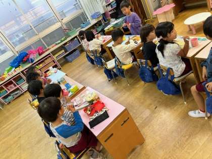 歌を歌ったり、絵本を見たり、お家の人が作ってくれた美味しいお弁当を食べたりして、毎日楽しく生活しています。