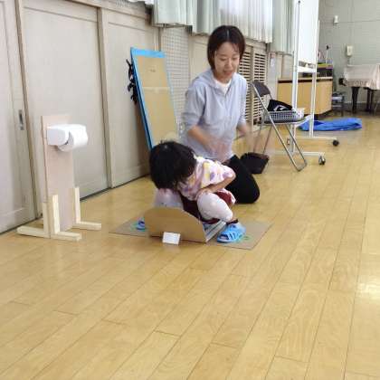 保健指導後のもも組さんを覗きにいくと、和式トイレを使い、先生に自慢げに報告している姿がありました。