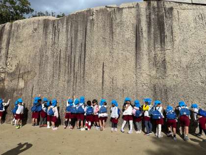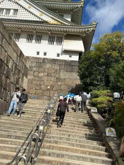 たくさんの人が大阪城に登っていて、今日は今の大阪城の93回目の誕生日とういうことで、記念のカードをもらい、喜んでいました。住吉幼稚園の100周年と比べて、ちょっとだけ住吉幼稚園が歳とってるなと話していました。