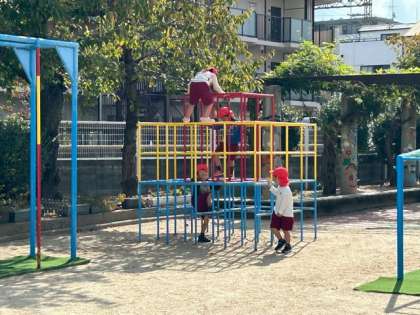 フラフープを腰で回したい、自転車に乗れるようになりたい、ジャングルジムの高いところまで登りたいと、自分で挑戦することを考えて、遊んでいます。