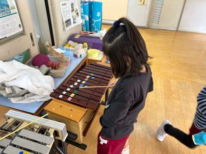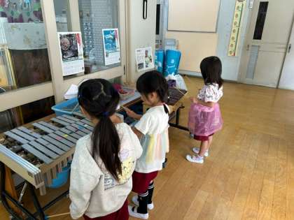 友達が触っていないときに、興味をもっている子どもたちがちょっと触ってみています。