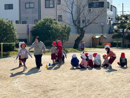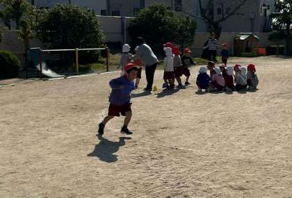 最近、あか組がはまっているものはリレーです。好きな遊びの中でも、みんな集まっても「リレーしよう!」と楽しんでいます。