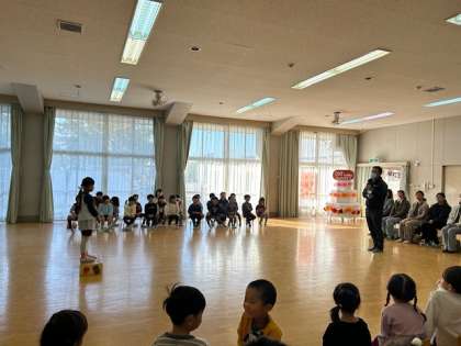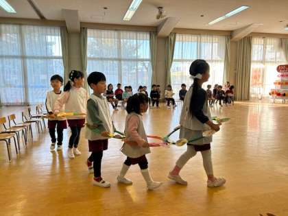 あお組からは輪投げのプレゼントがありました。お家で遊んでもらえると嬉しいですね。