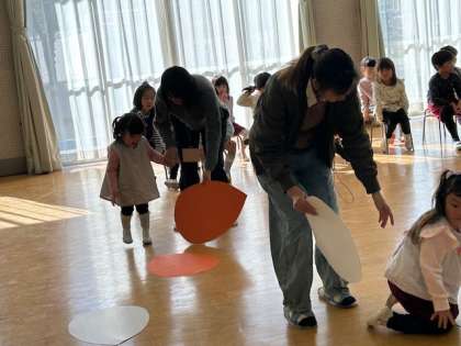 お家の人と一緒に落ち葉の神経衰弱をしたり、みんなでもみもみもみじの仲良し遊びをしたりして楽しい時間を過ごしました。