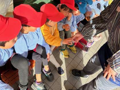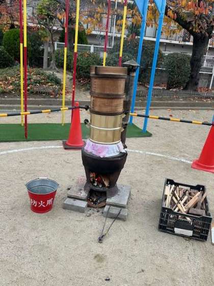 楽しみにしていた子どもたちは煙の匂いや湯気の様子をにこにこと見て、園庭に集まりました。