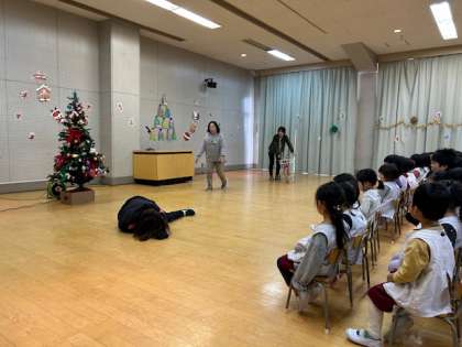 冬休み、お家の人と公園に遊びに行くことも多いので、終業式で、先生が子どもになって、寸劇をして、安全指導を行いました。