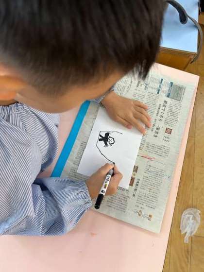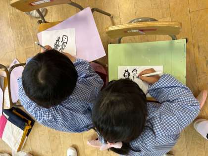 作品展で作品を作っていますが、その絵を丁寧にかいていました。「友達と一緒に作ってる」「これ、私が作ってたやろ」と教えてくれました。