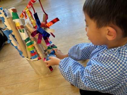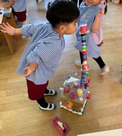 キラキラのところが好きなようで、その部分をさわっていたり、「ふう」とロウソクを吹き消したり、自分の作った作品を大事にしています。