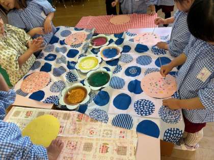 「ポンポンポンってするねんで」「見てて」と模様をつけたりしていました。