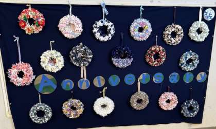 PTA成人教育で作った作品も飾り、にぎやかになりました。