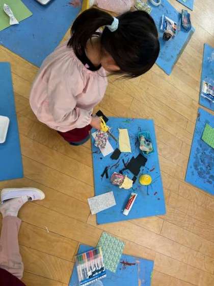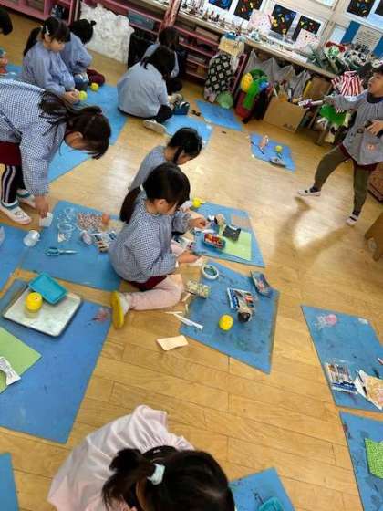 お雛様を見て、自分たちのお雛様も作りたくなりました。いろいろな素材から、お雛様に合う素材を探して、自分だけの雛飾りを作りました。