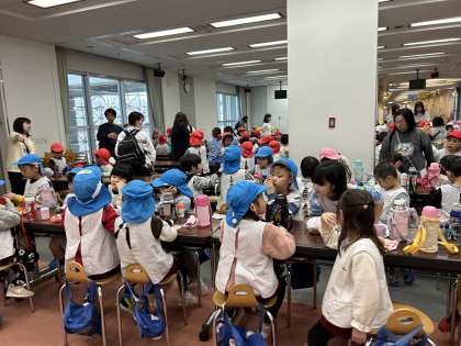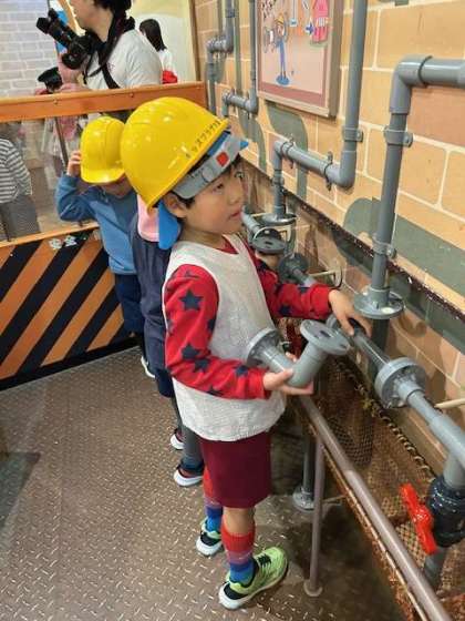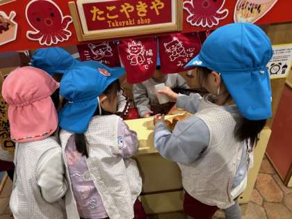 おにぎり弁当を食べて、また遊びに行きました。お店屋さんや工事現場でなりきって遊びました。