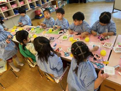 「こんなに可愛いのできたよ」「目も髪の毛もあったな」と言いながら作っていました。