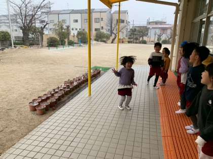 雪だ! 公開日 2025/02/22 更新日 2025/02/22 園の様子 園庭に雪が降ってくる日が続きました。預かり保育に参加していた子どもたちは大喜びです。チューリップの植木鉢にもうっすらと雪が乗っていました。 皆で何かしたくなったみたいで、ふる雪に向かって、ゆきやこんこ?と大声で歌っていました。なぜか並んで歌っていました。 いいね(0)