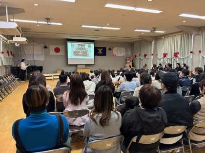 保護者と一緒に3月2日に行う100周年記念式典のリハーサルを行いました。一緒に歌を歌ったり、「100年のあゆみ」のスライドを見たり、記念コンサートを聴いたりしました。楽しい時間を過ごすことができました。