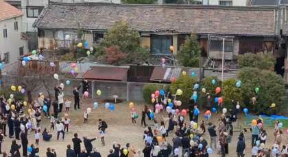 その後は、みんなでバルーンリリースをしました。今回は風がなく、真上に上がっていきました。
