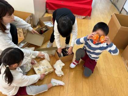 「お顔にカバーして」「壊れないように」「これはどこに入れるんやろ」と言いながら、片付けを最後までしてくれました。