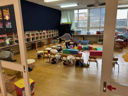 揺れがおさまったと聞くと、防災ずきんを頭にかぶってリズム室へ。