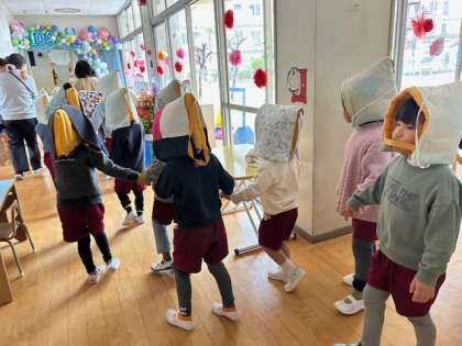 津波がきた東北の震災の話をして、「溺れてしまうから、高いところに逃げないとあかんな」「でもおうちだったらこのざぶとんないわ」「硬いヘルメットとかいるな」といろいろなことを想定して、考えていました。