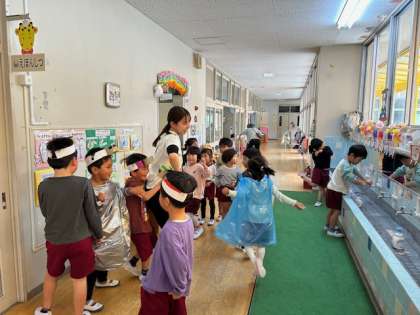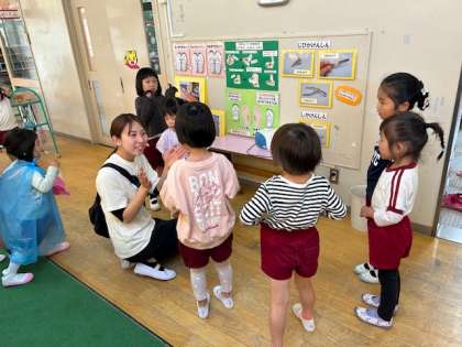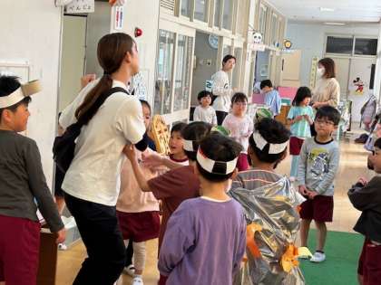「踊りたい」と、廊下で曲をかけて集まってきた子どもたちが踊っていました。「どんな曲がいいのかな」と先生と一緒に考えながら、踊って楽しんでいました。