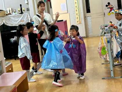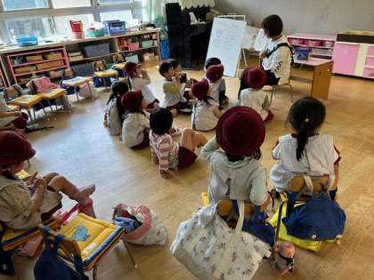 ブロックでお家や車を作って遊んだり、好きな曲をかけて歌ったり踊ったりして、友達と楽しんでいます。降園前には絵本を読んでもらい、一生懸命に聞いていました。