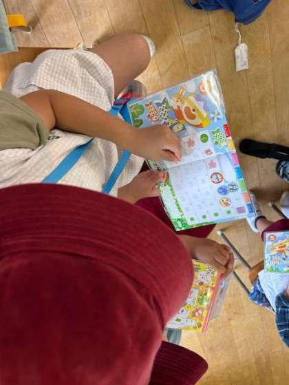 降園前には、お便り帳にシールを貼ることを楽しみにしています。自分で枠の中にシールを貼ることも上手になってきました。