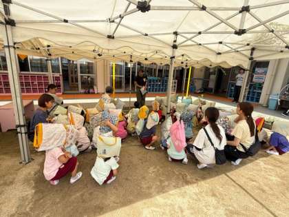 今年度初めて地震の避難訓練をしました。火災の時とは違う避難の仕方ですが、先生の話をしっかりと聞き、防災頭巾をかぶって安全に避難することができました。