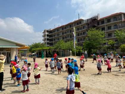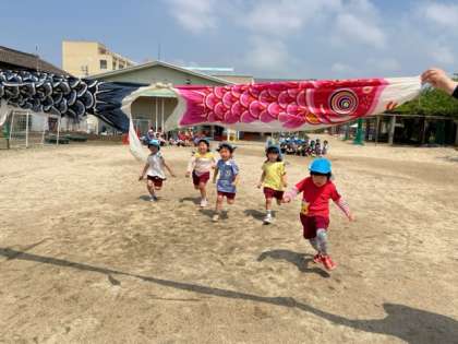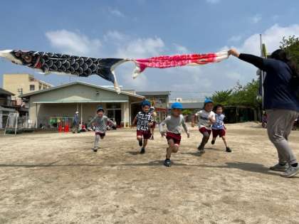 今日もこいのぼりを見ながら体操したり、こいのぼりまでかけっこをしたりして、春の風を感じながら、楽しみました。