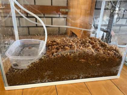 ホタルの幼虫を幼稚園にいただきました。真っ暗な部屋でじっと見ていると、幼虫がピカッ、ピカッと光っていました。水から這い上がり、土の中でさなぎになるそうです。成虫になる準備を始めたんですね。