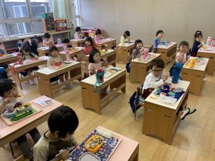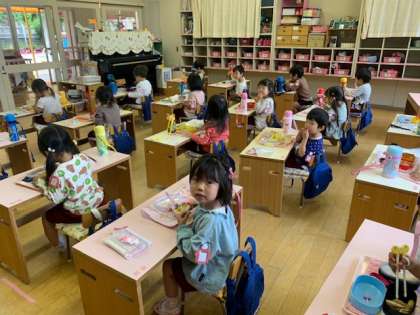 初めてのお弁当は楽しみにしていました。「美味しい!」と、パクパクと喜んで食べていました。
