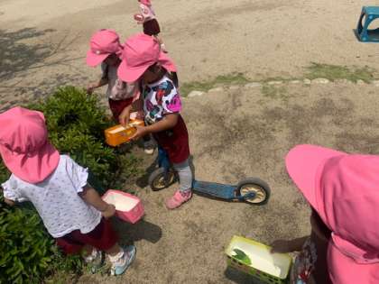 宝箱に何を入れようかな 公開日 2022/05/28 更新日 2022/05/28 園の様子 先日、シールを貼った宝箱を持って、外で遊びました。 「キラキラの石見つけたよ」「かわいいお花があったよ」と、それぞれが見つけた花や葉っぱなどを大切に入れて、嬉しそうに持ち歩く姿が見られました。 いいね(0)