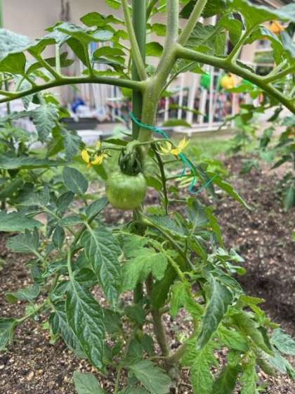 畑や植木鉢の野菜が大きく育ち、実をつけ始めています。