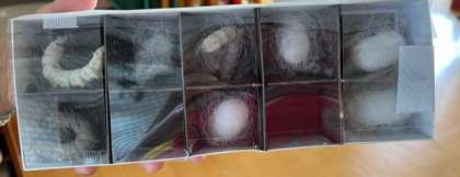 カイコは、糸を吐いて繭を作りサナギになり始めました。
