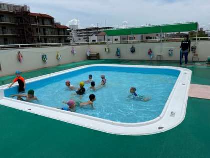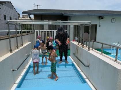 プールに入ったり、友達の様子を見たり、シャワーで遊んだりしながら、プールを存分に楽しみました。