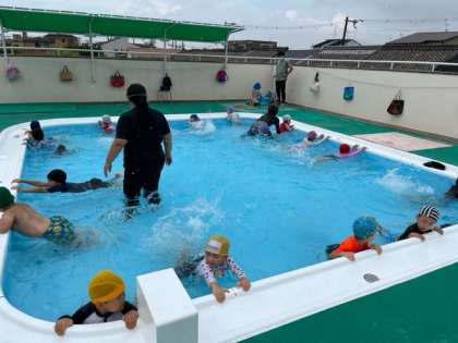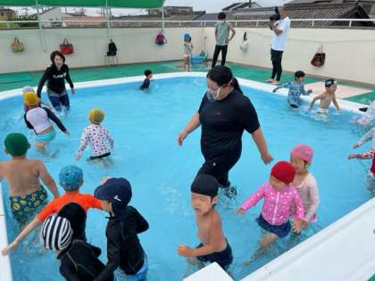 久しぶりにプールに入りました。みんなで並んで歩いたり、ばた足をしたり、ずいぶんとプールに慣れてきました。