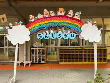 明日は子どもたちが楽しみにしている運動会です。今日の雨も上がり、明日はおうちの方にたくさんの応援、声援をもらって、いつも以上の力を発揮できるのではないかなと思います。たくさんの方が来てくださる予定になっています。おうちの方も狭い場所で、隣の方とも接近した状況での観覧となり、大変かと思いますが、感染症対策をしながら、譲り合って子どもたちの頑張りを目に焼き付けてくださいね。明日は、あお組がつくってくれた門を通って、元気に、運動会を楽しみましょう!