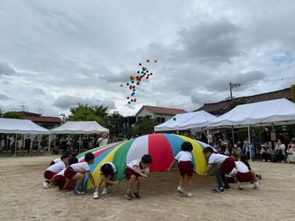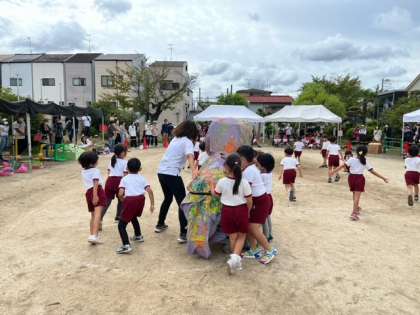 リュウを助けるために、3段4段の跳び箱を跳んだり、一本歯下駄で後ろ歩きをしたり走ったり、一輪車は一人で乗れるようになったり、ペダルローラーを頑張ったり、竹馬で長い距離を歩いたり高い竹馬で歩いたり、難しいことににチャレンジしました。全員で鉄棒の前周りや逆上がりにも挑戦!15回連続逆上がりを成功した子もいました。リュウを助けたお礼にもらった宝物のパラバルーンのクライマックスのポップコーンが弾ける様子は大成功でした。